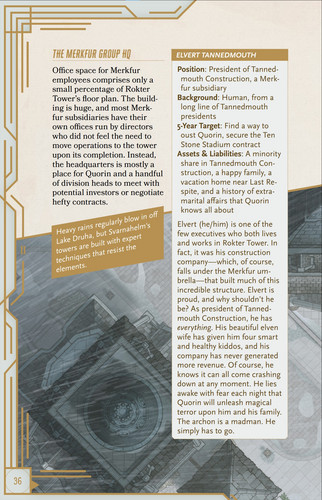 - Deep-dives into the five megacorps that rule the district, and the bizarre archons that helm each